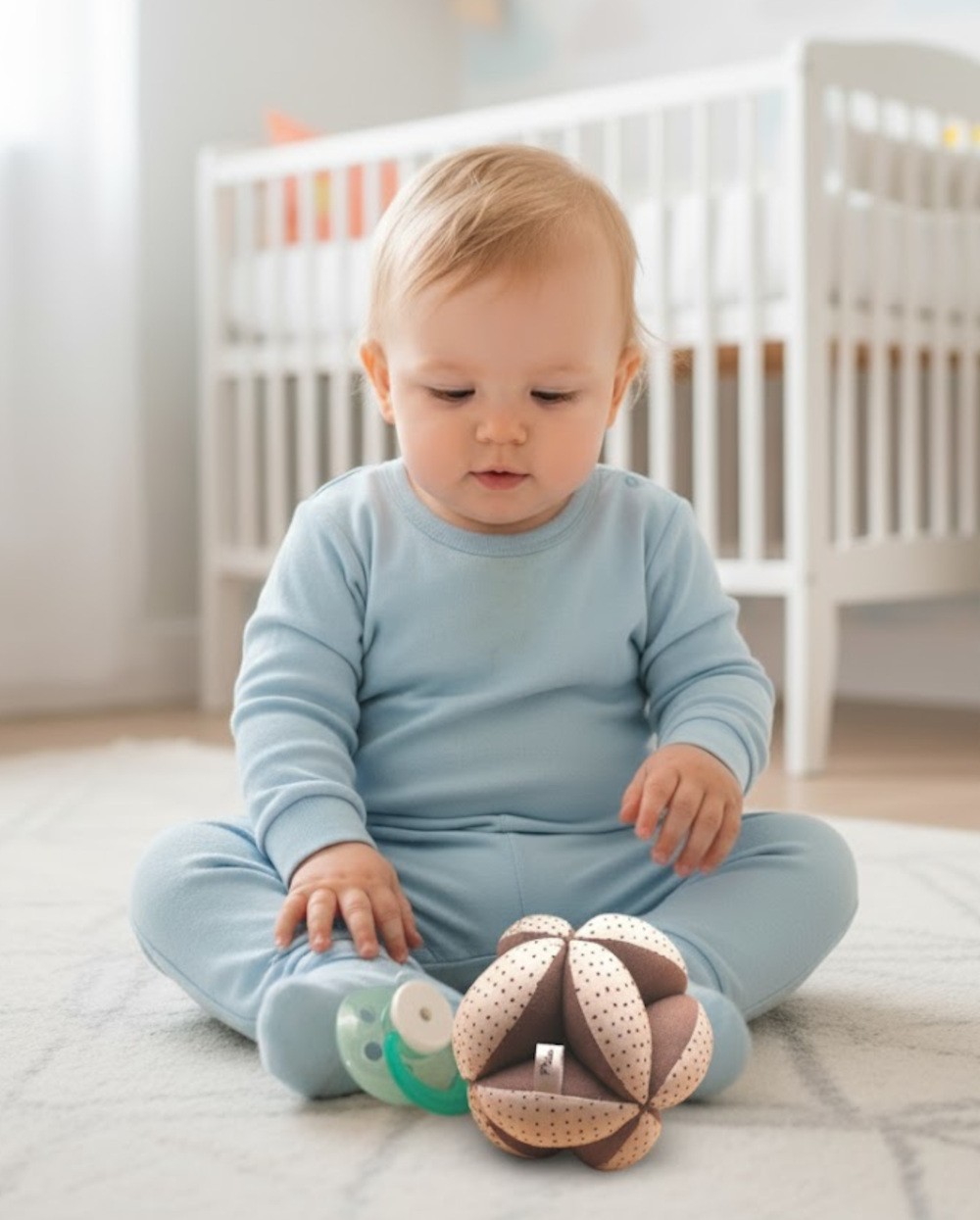Découvrez la Balle de Préhension éco-Responsable pour l'éveil de votre bébé.