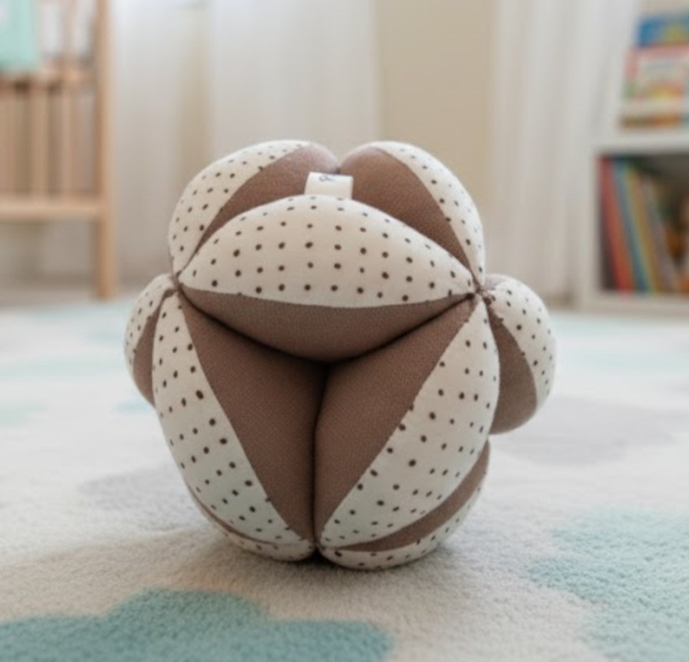 Cette balle de préhension est bien plus qu'un simple jouet : elle est une invitation à la découverte sensorielle et motrice, conçue avec le plus grand soin.